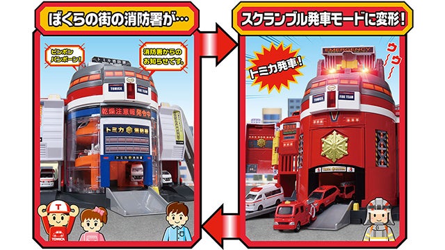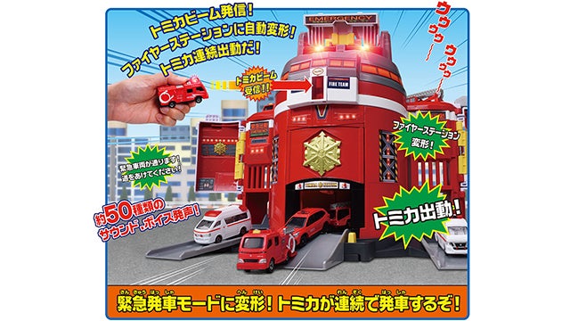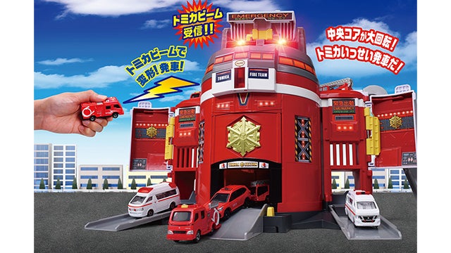 トミカビームでぐるっと変形!トミカが一斉出動!サウンド満載の消防署が登場!