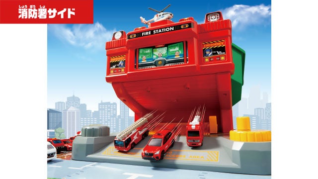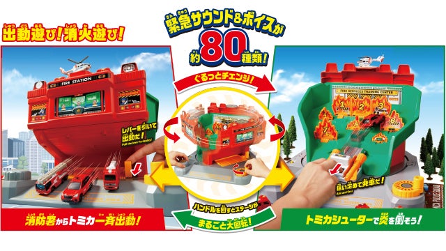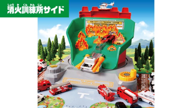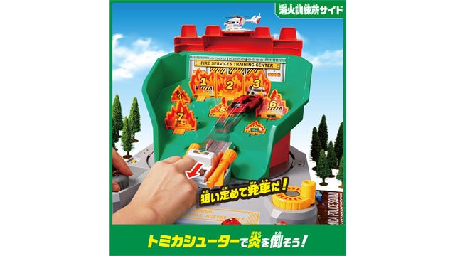 消防署が消火訓練所にぐるっとチェンジ!トミカシューターで消火せよ!約80種のサウンドとトミカを使った消防ごっこができる訓練所!