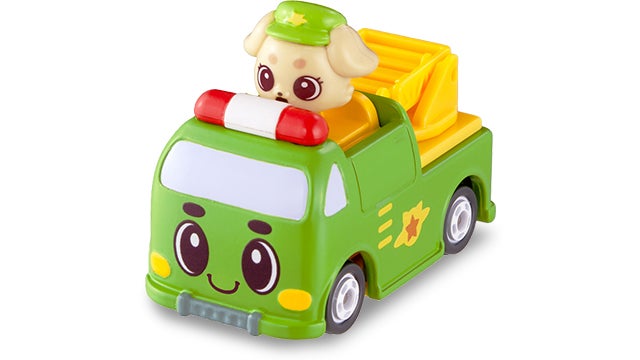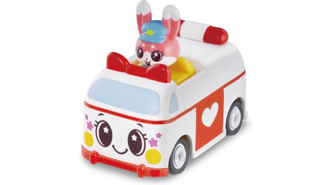 ミミィとキュルンが救急車にのりものスターチェンジ!表情にはスターが入っているよ!