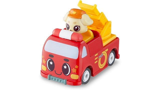モコとファインが消防車にのりものスターチェンジ!表情にはスターが入っているよ!