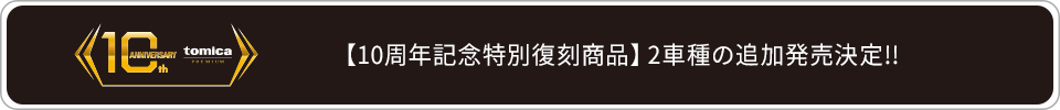 トミカプレミアムの10周年を記念して、当時惜しまれながら生産を終了した車種を特別に復刻する「10周年記念特別復刻商品」。