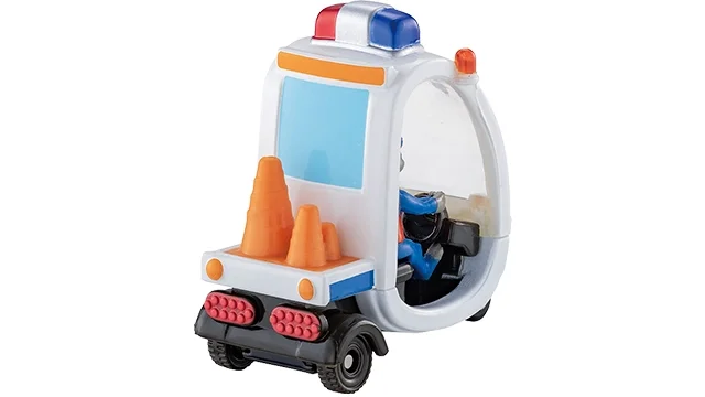 車体側面は、警察官の制服を表現。同シリーズのニック(別売)と並べて飾れるデザインです。