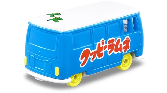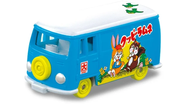 「クッピーラムネ」の印象的なデザインをラッピングしたバン型タイプのトミカです。