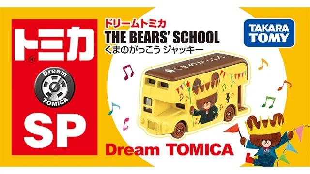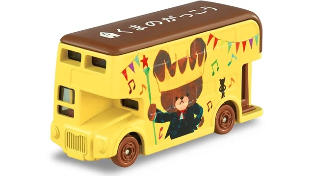 「くまのがっこう」の主人公ジャッキーのラッピングバス。ぬいぐるみのチャッキーも一緒です。