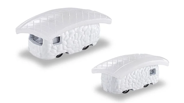 ずっしりした重厚感のあるシャリの部分には車らしい運転席や、フロントライト、リアライト、ナンバープレートが付いています。