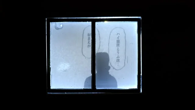 ・1F店舗内の電灯が点灯し、文太のシルエットが浮かび上がります。