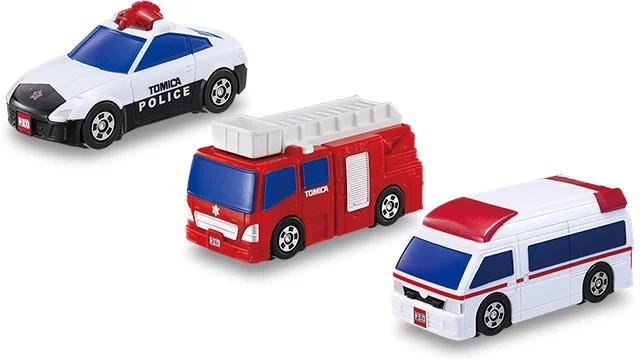 パトロールカー、消防車、救急車とマップですぐに遊べるオールインワンセット!