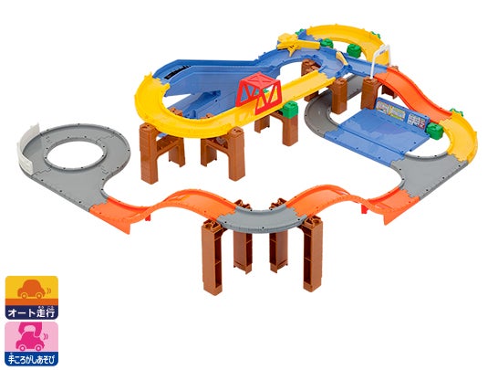 手でも分岐できるし、高速どうろで自動の分岐も楽しめるレイアウト。