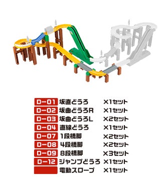 どうろと橋脚はどうろの裏の穴に橋脚の出っぱりを合わせてつなごう!