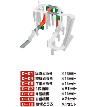 どうろと橋脚はどうろの裏の穴に橋脚の出っぱりを合わせてつなごう!