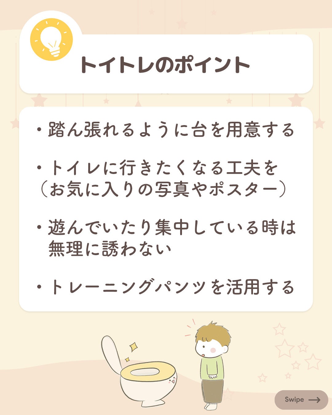 ポイントは、子どもが楽しくトイレに行きたくなるようにすること。