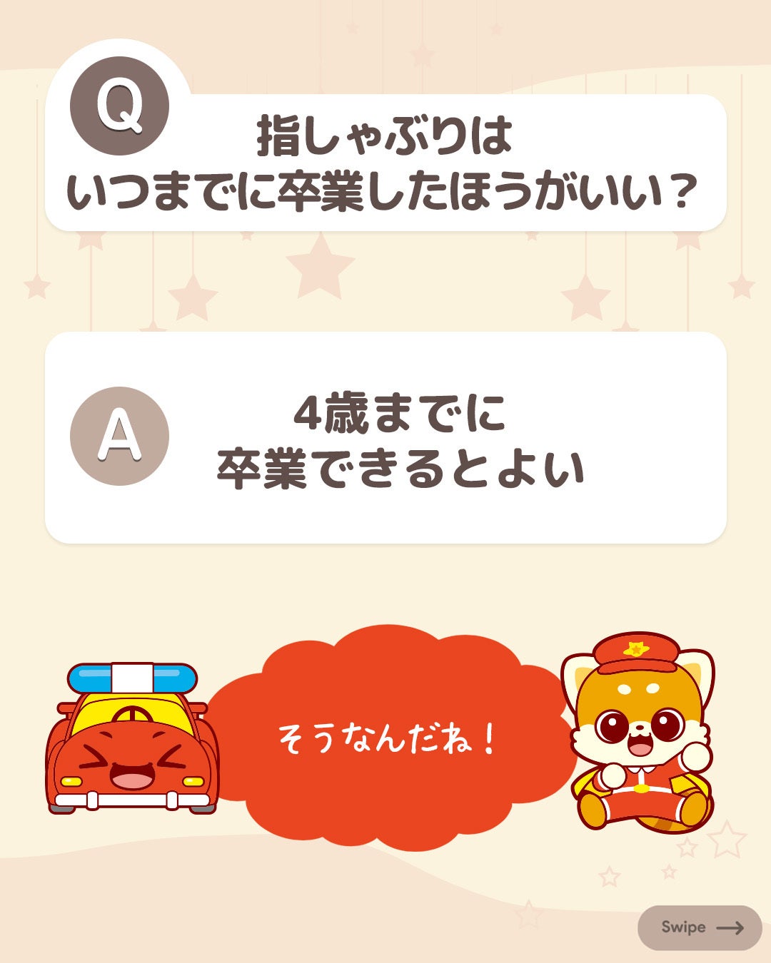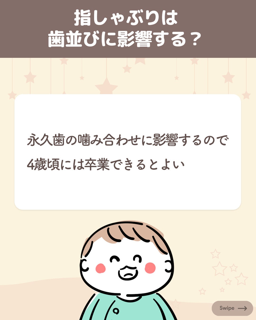 でも、歯並びに影響することもあるので、4歳になる頃には卒業できるとよいでしょう。