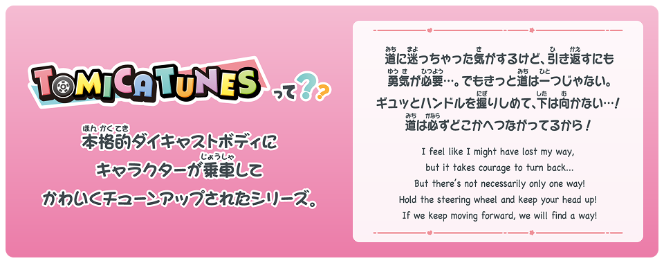 トミカ公式サイト。トミカチューンズは、本格的ダイキャストボディにキャラクターが乗車してかわいくチューンアップされたシリーズ。