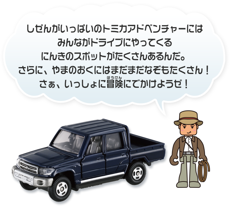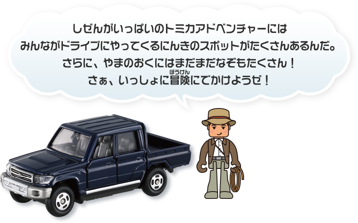 自然がいっぱいのトミカアドベンチャーで冒険に出発だ!