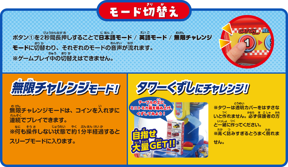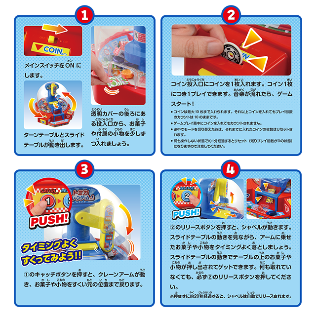 商品パッケージの底面〈遊ぶ前に〉と同じ手順でドームを外し、問題を解決して元の状態に戻してください。