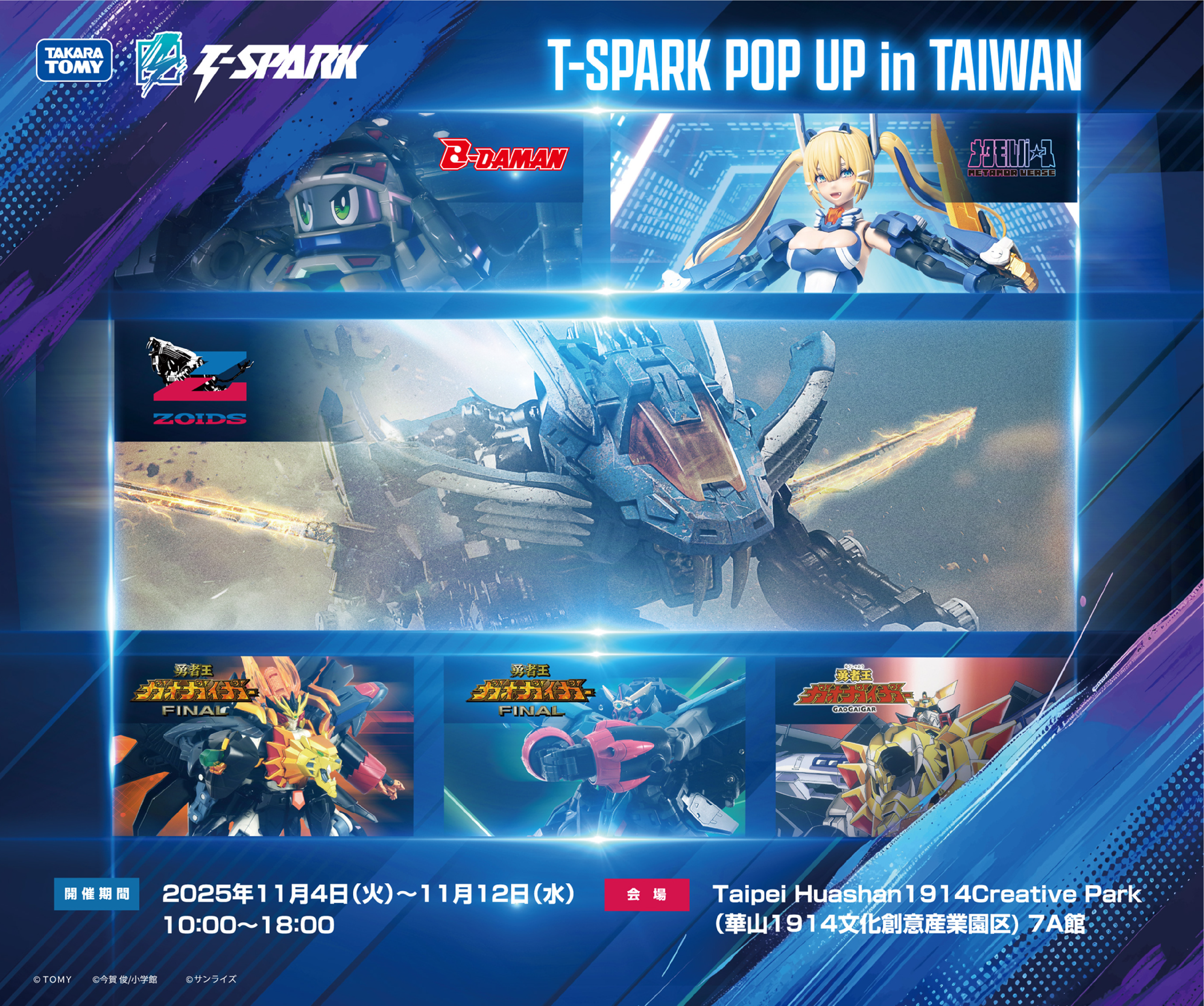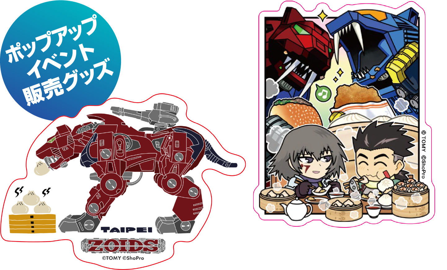 為慶祝彈出式活動「動畫《ZOIDS》25週年紀念巡迴展」特別繪製的主視覺圖,將推出超過30款紀念商品,包含壓克力立牌、鑰匙圈及當地限定ZOIDS周邊等。 為紀念本次活動,更將推出以舉辦地台灣為靈感的在地插畫商品(壓克力立牌、貼紙、徽章等)。