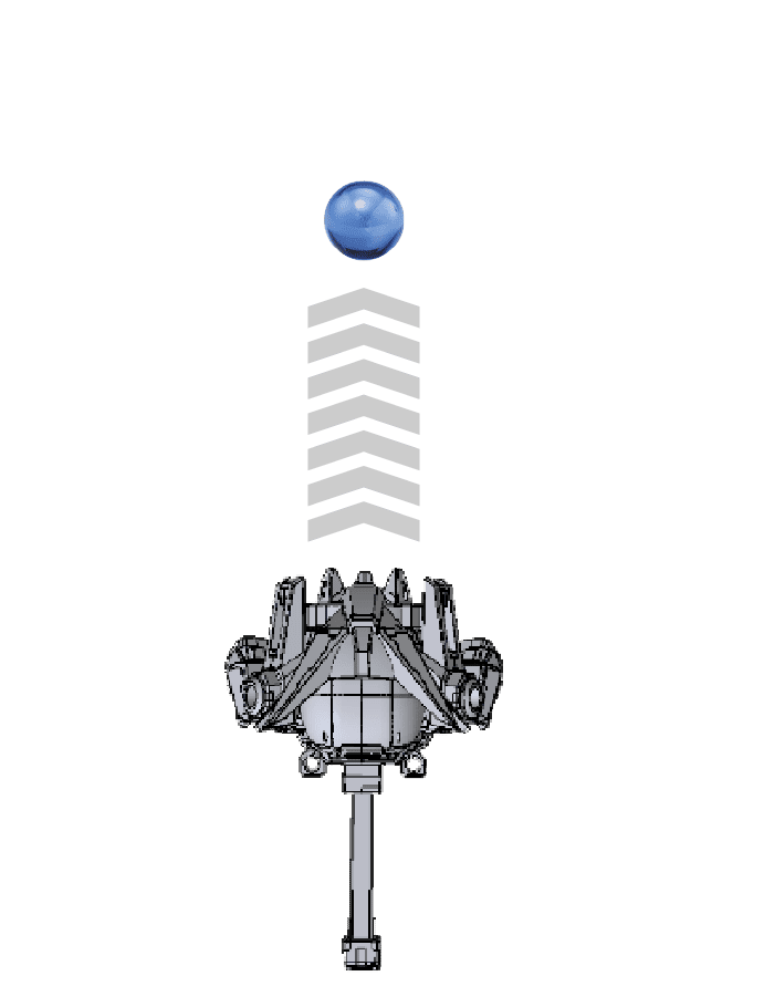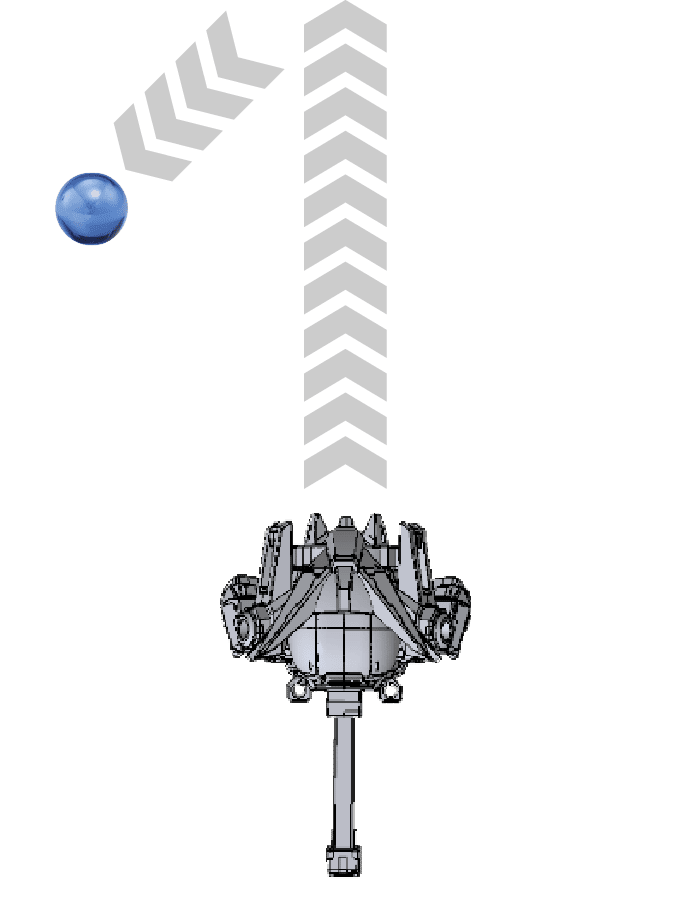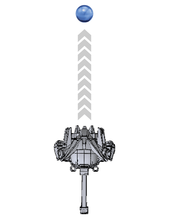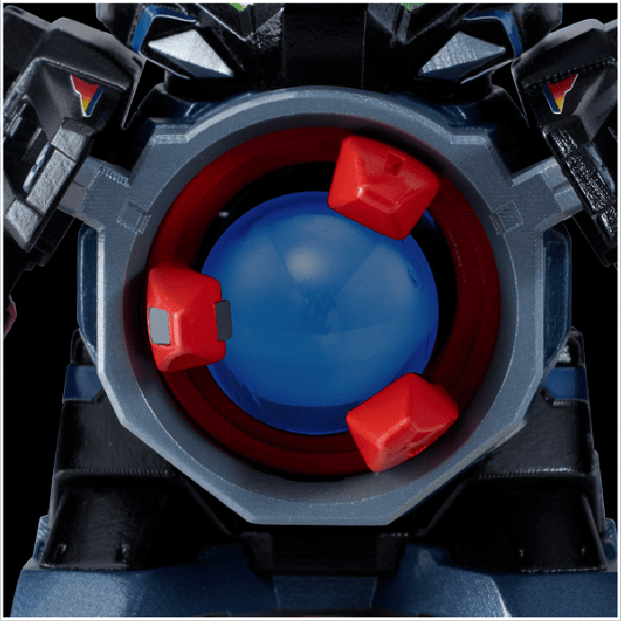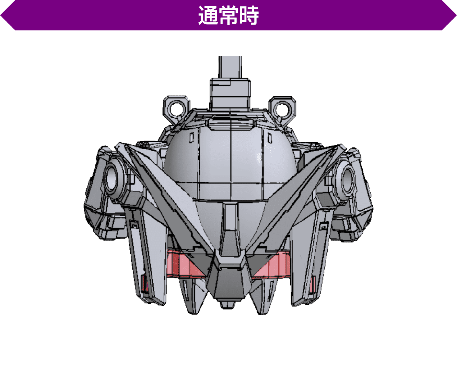 3本のツメは円周上に均等に配置され、ビーダマを保持したまま360度の回転が可能。これにより、ビーダマにかけるスピンの角度を自由に変えることができ『ドライブ』『バックスピン』『イングリッシュ』(左右の跳弾)といった球種を撃ち分ける事が可能となっている。
