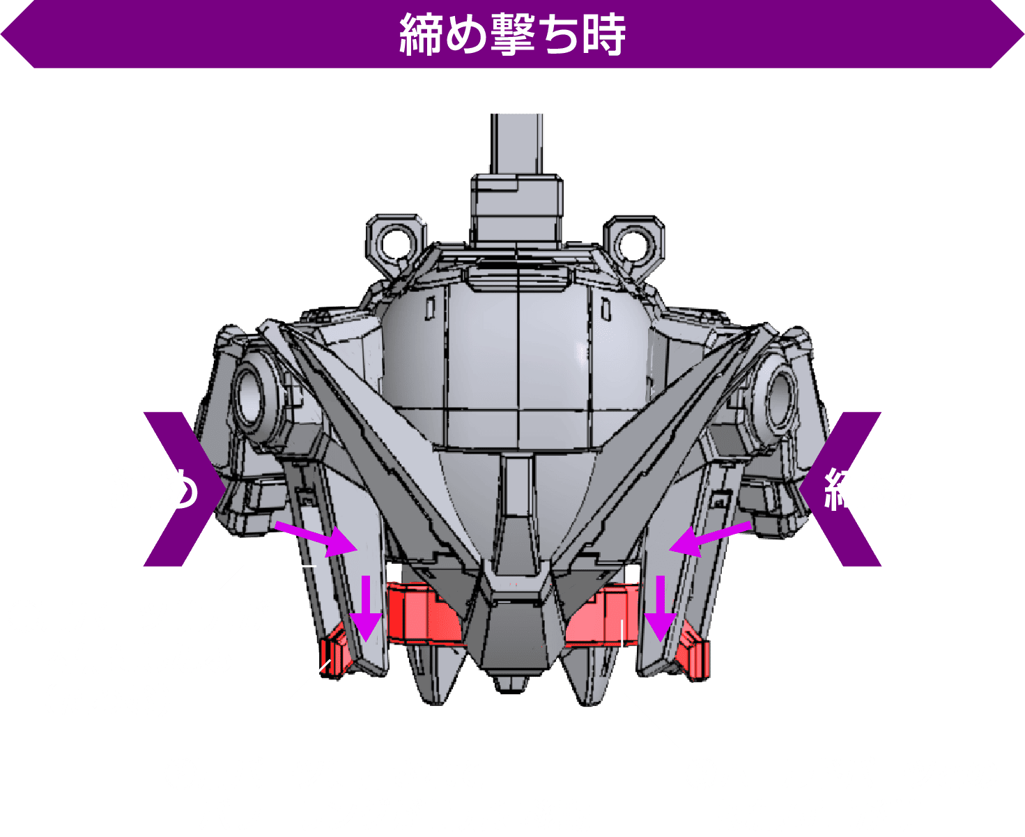 ホールドパーツの角度が変わり通常の締め撃ちが難しいという『ブラッディクロウズ』の弱点を改善する為にボディ前部に取り付けられた締め撃ち用の強化パーツ。『ブラッディクロウズ』の外周を囲うリングの上部2か所の突起が、両肩前部のアーマーに接続され、締め撃ちによる「パーツのしなり」を利用して前後に可動する。これにより、ブラッディクロウズのツメとの接触位置が変わり、締め撃ち効果が得られるような構造になっている。