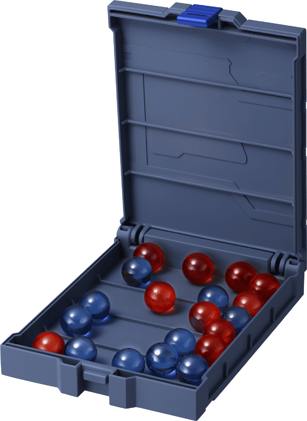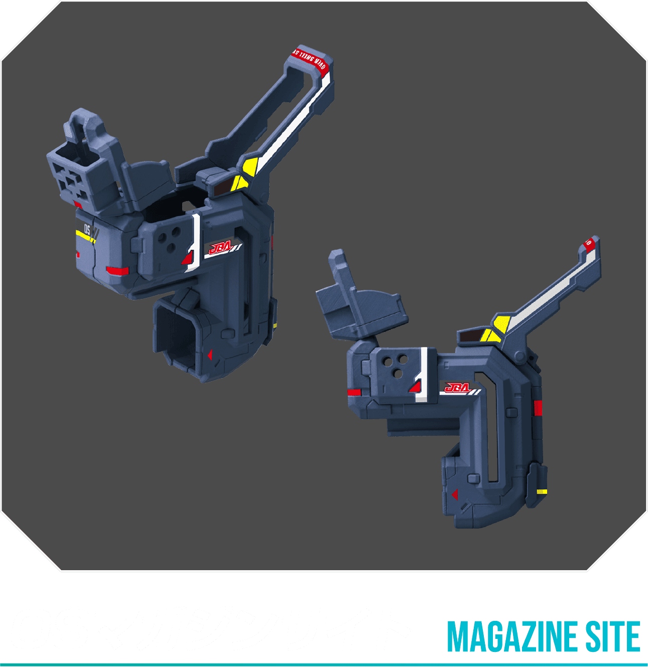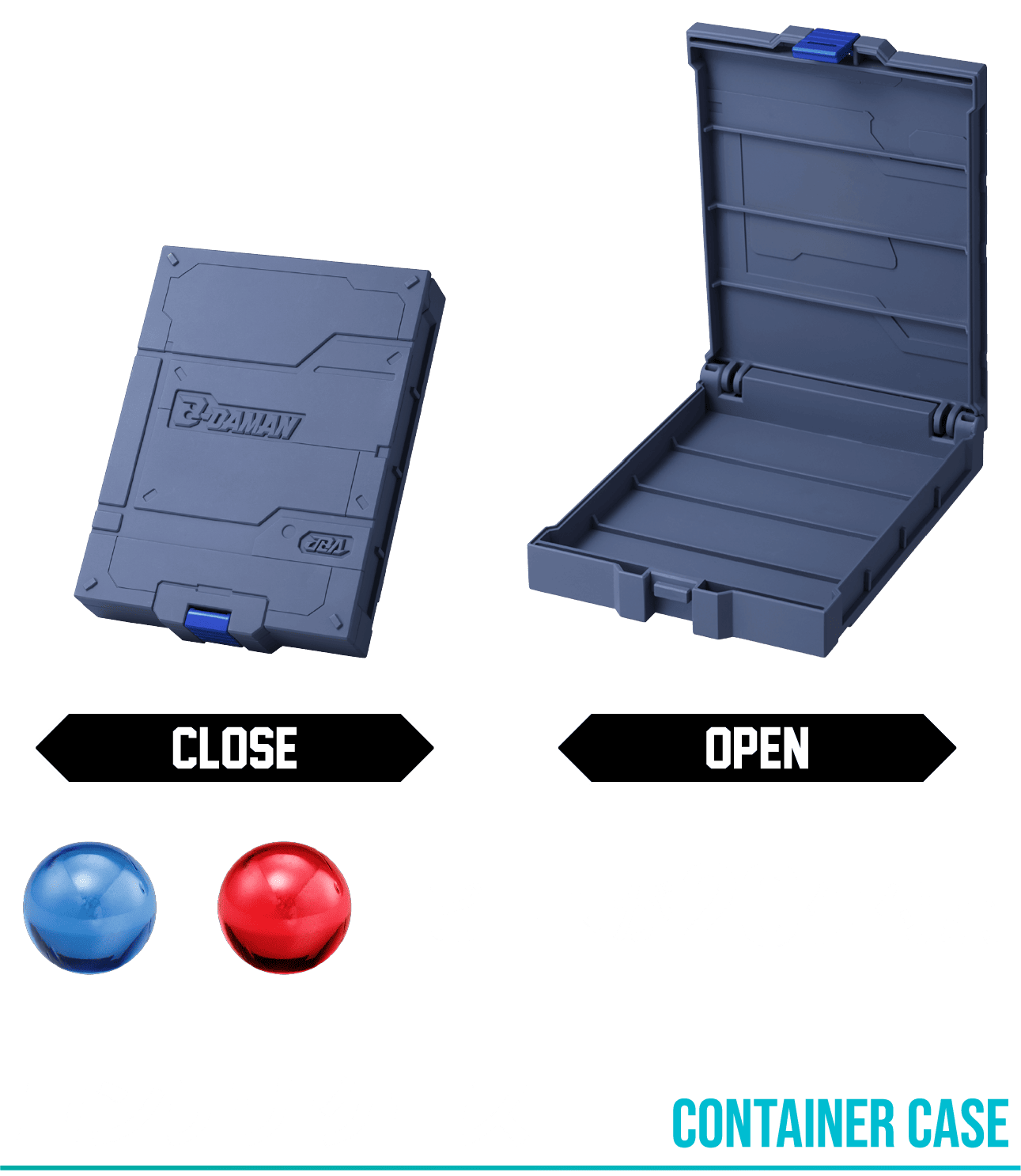 ビー玉の格納可能なコンテナケースセットが付属。B-DAMANとJBAロゴが刻印されている。成形色はブルーグレー。
