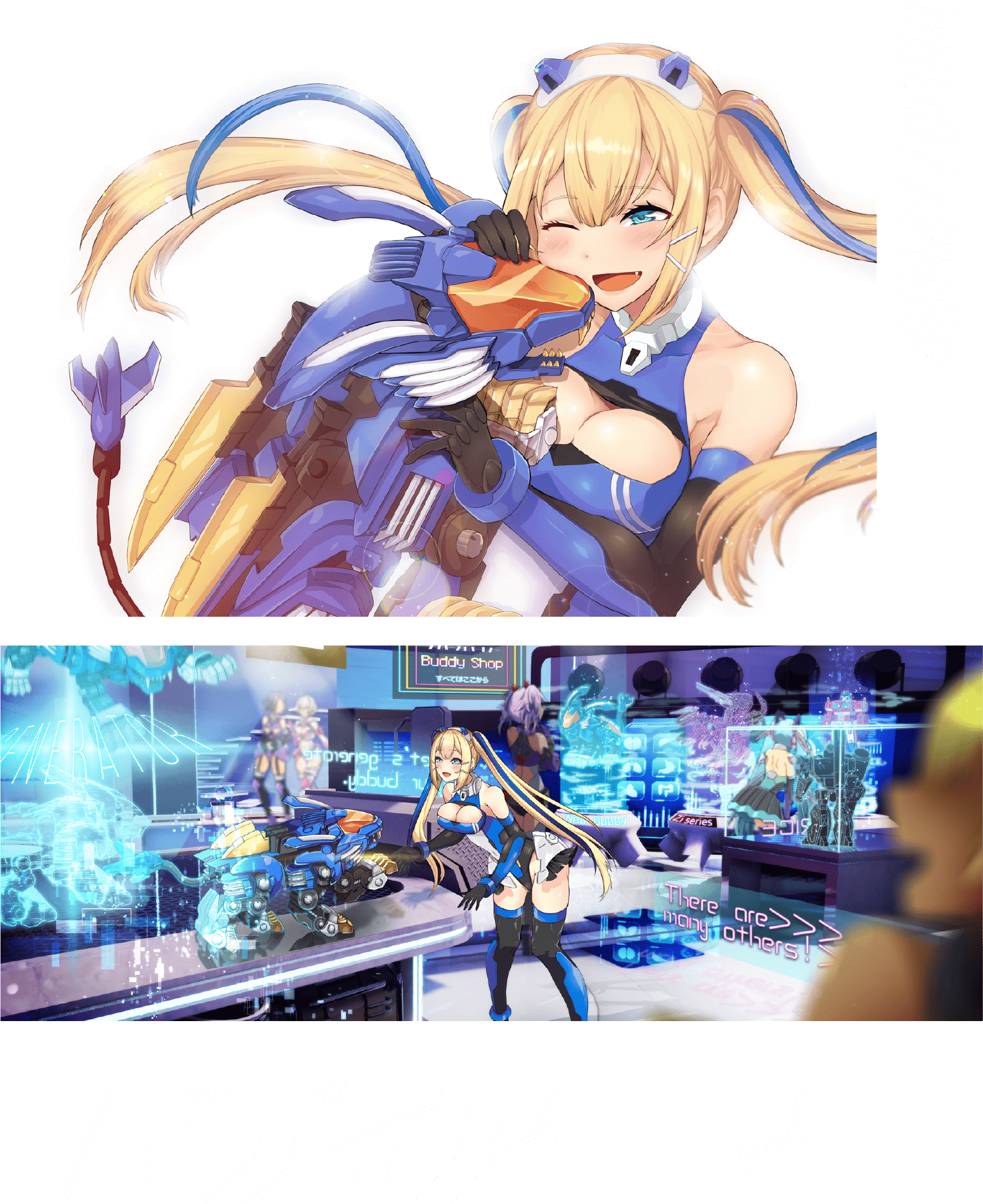 また、アニメや玩具IPなどとのコラボイベントが多数実装されていることでも話題を呼んでいた。ちょうどゾイドとのコラボが始まるタイミングだったこともあって碧は興味を持ちプレイを始めることになる。NPC(ノンプレイヤーキャラクター)と思われるフィーネと出会い、真問に教わりながらのめりこんでいく。