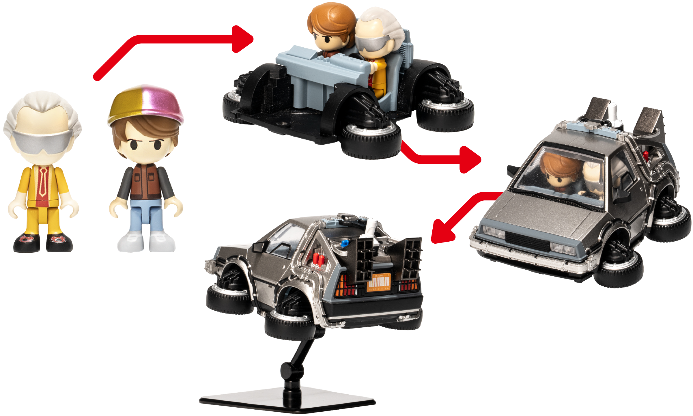 ドク、マーティ(キャップ付き)のミニフィグとのセットです。
