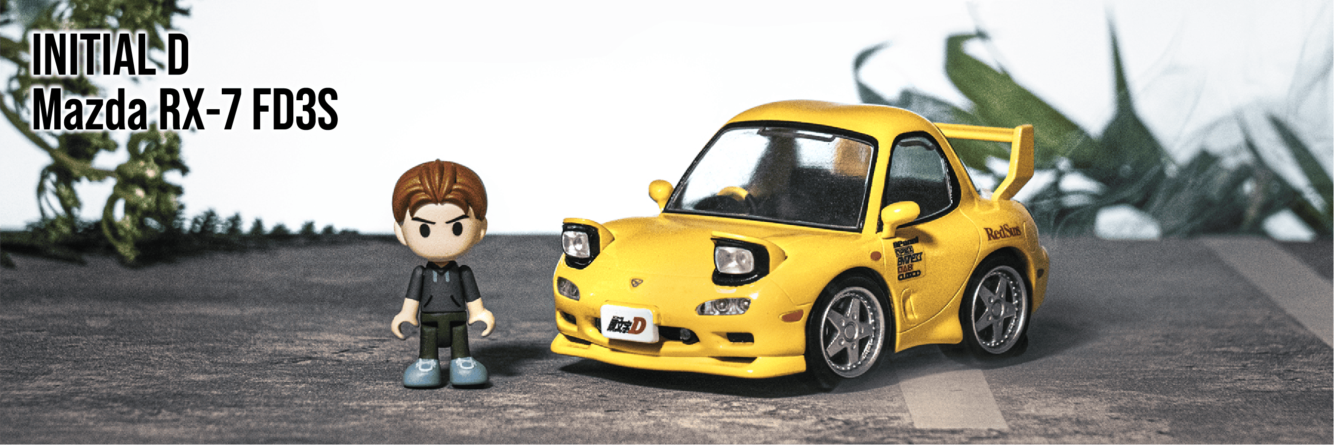 人気コミック『頭文字D』より、Toyota AE86 TRUENO&藤原拓海のセットとMazda RX-7 FE3S&高橋啓介のセットが登場。