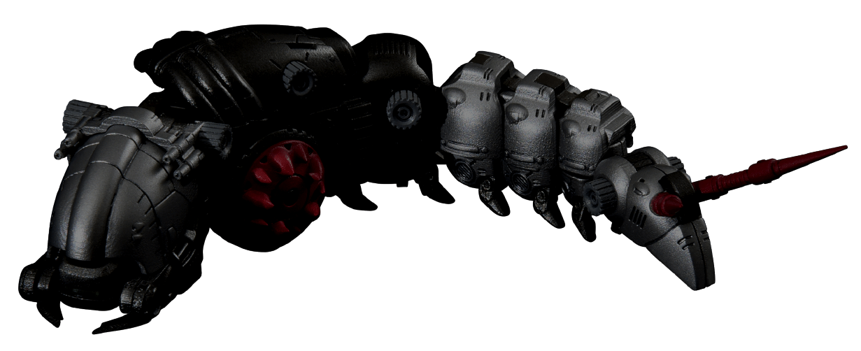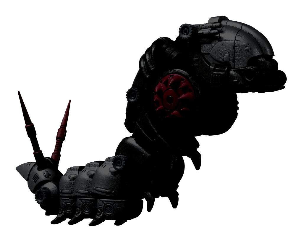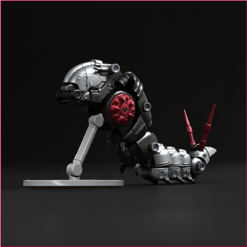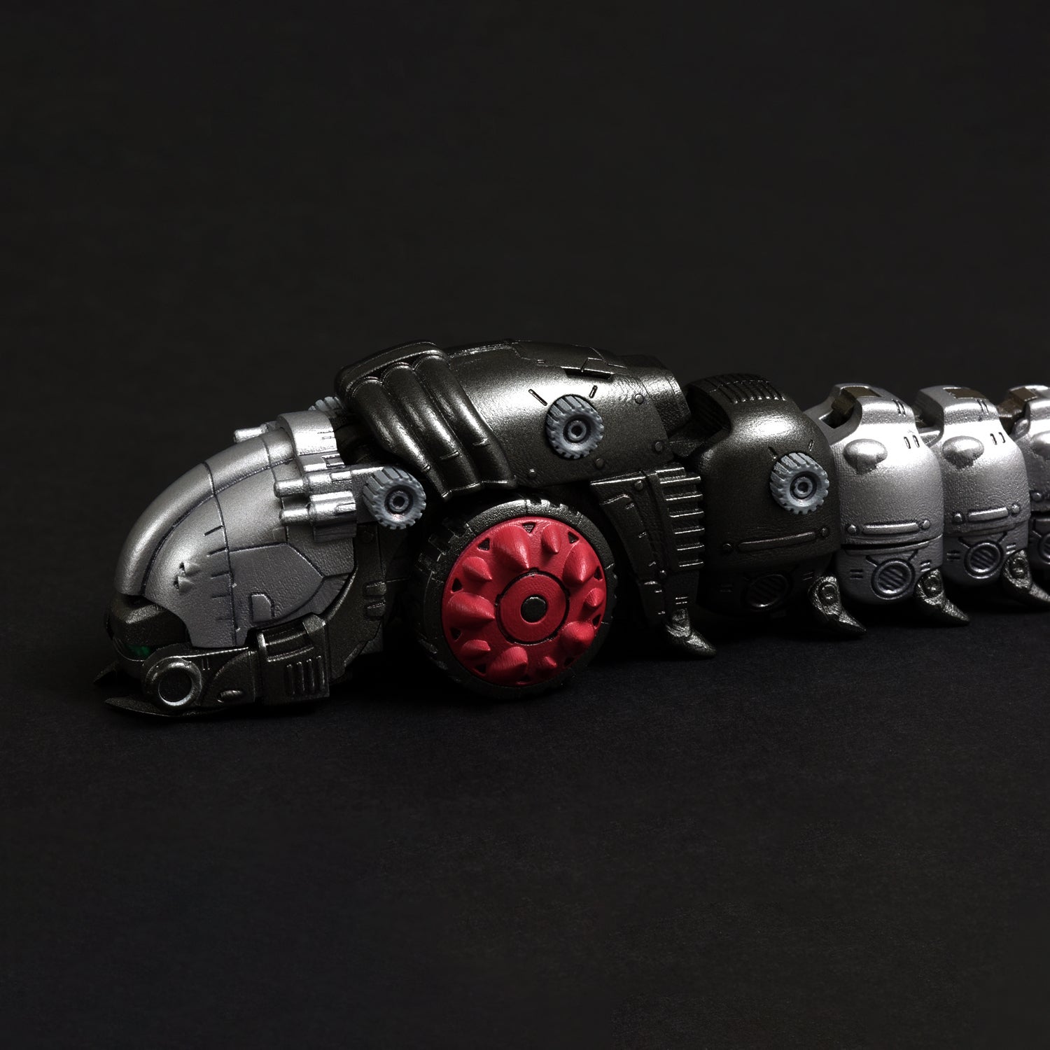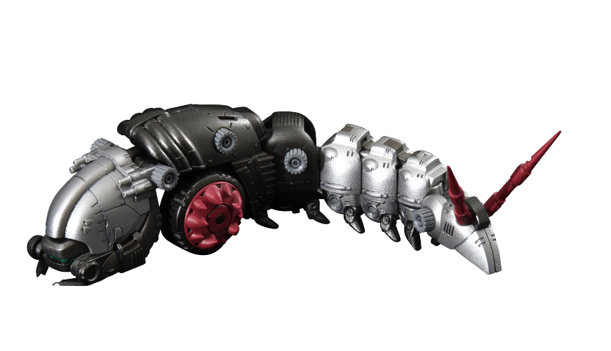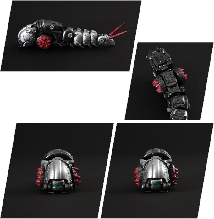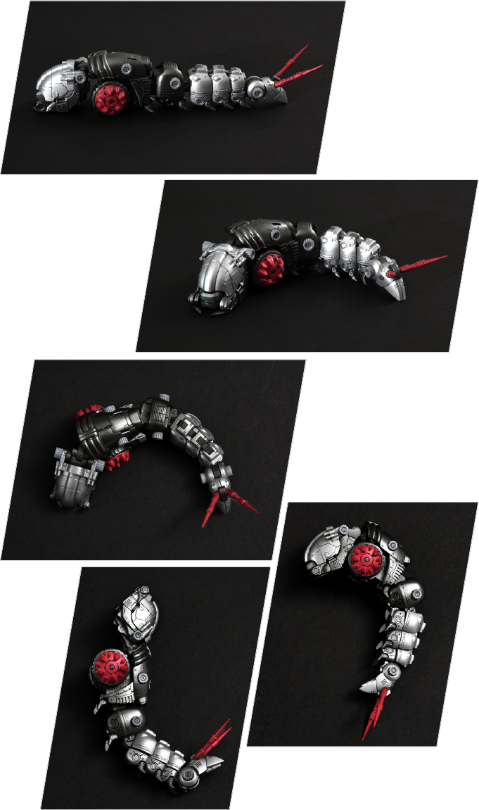 胴体の節に引き出し関節を内蔵しているため、イモムシらしいフレキシブルなポージングが可能。