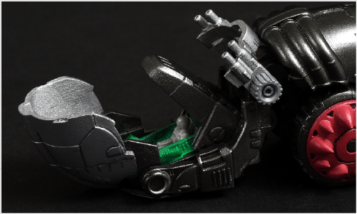 頭部を引き出し、20mmガトリング砲部分を上部に展開することでカウルが開閉。