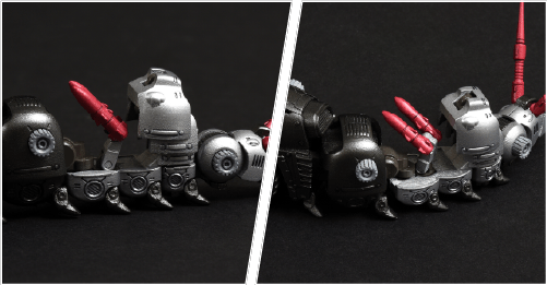 尾部のミサイルハッチを蛇腹に展開させることで、 格納された地対空2連装ミサイルが露出。