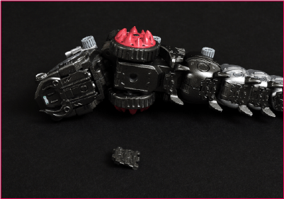 尾部のミサイル格納部は、戦闘メカとしてのリアリティーを追求するため、新解釈のハッチ開閉ギミックを採用。