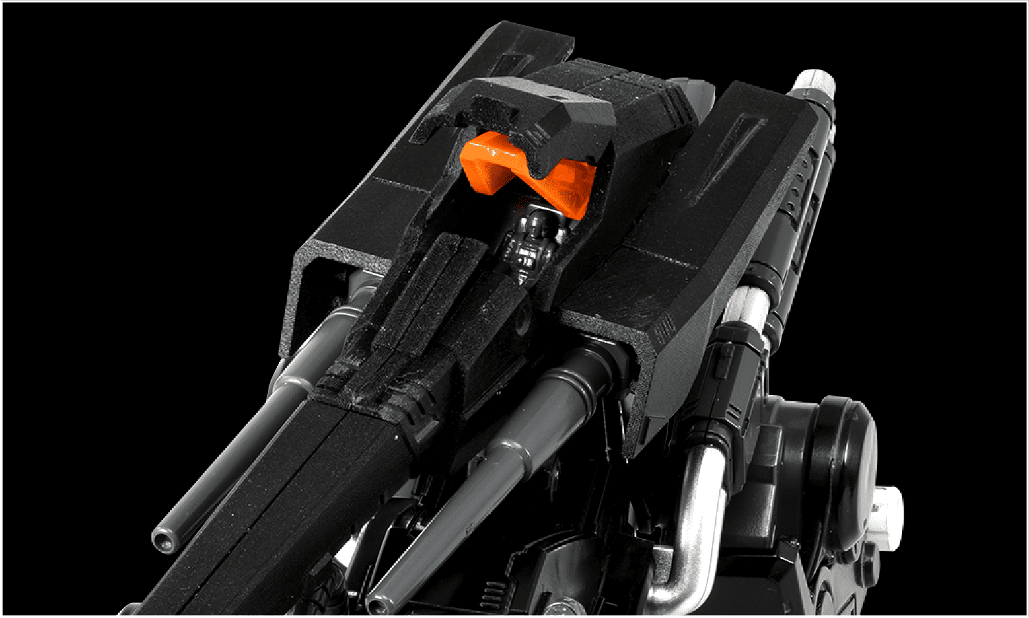 腰を低く落とした低姿勢からの射撃ポーズをとることができ、砲身は伸縮ギミックを搭載。