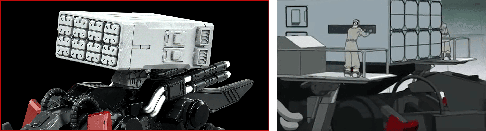 TVアニメ劇中にて描かれた「対ゾイド20mm機関砲」や「スプレッドミサイル」、さらに「槍状の弾体」を初の立体化。