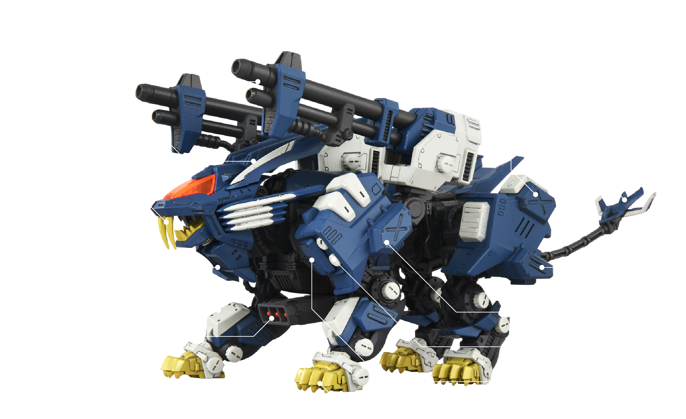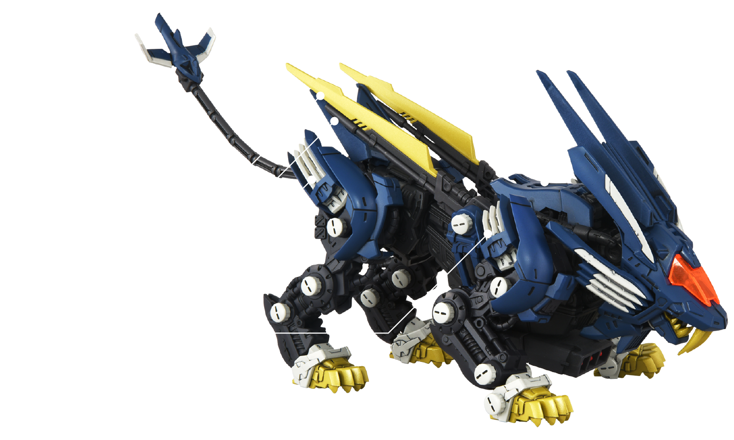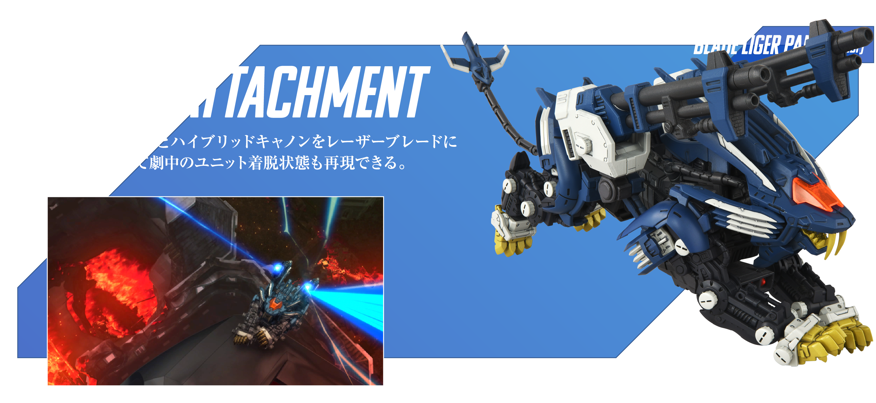「RMZ-001 ブレードライガー」本体パーツ一式に、ショートアニメーション「ZOIDS BATTLE FILMS」登場の設定に合わせパンツァーユニットの一部を接続パーツ含め新規造形で追加。
