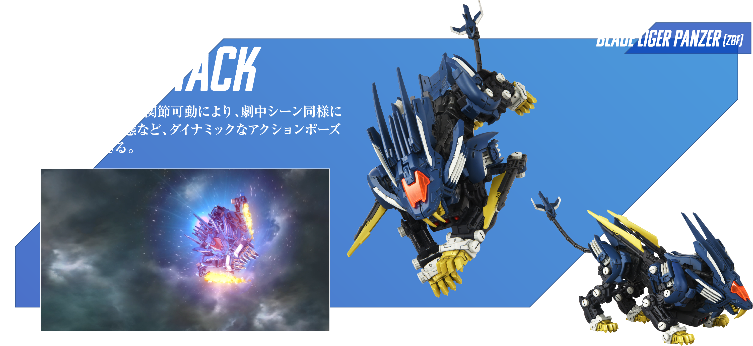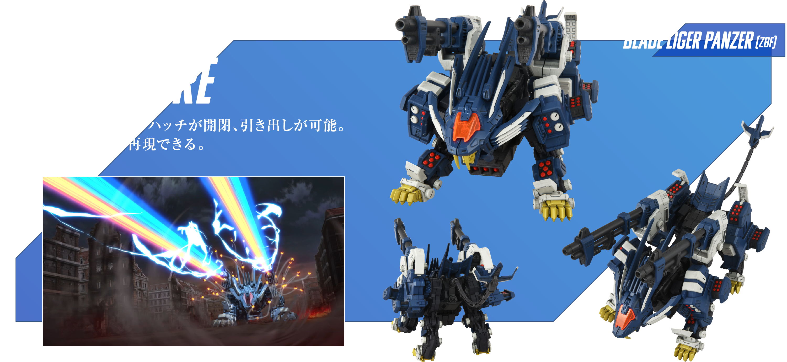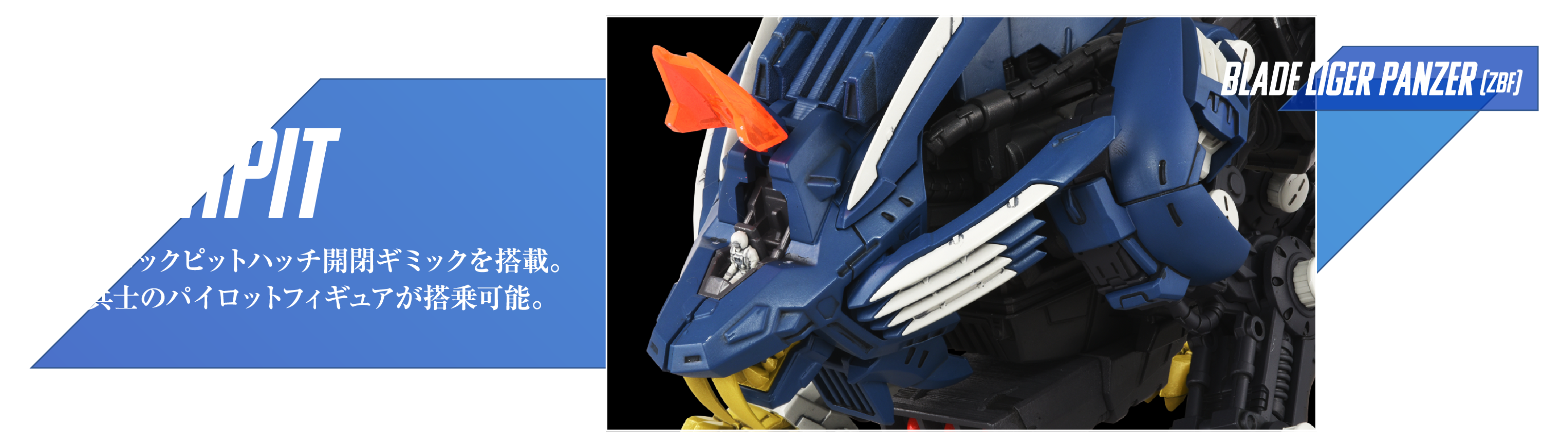 「RMZ-001 ブレードライガー」本体パーツ一式に、ショートアニメーション「ZOIDS BATTLE FILMS」登場の設定に合わせパンツァーユニットの一部を接続パーツ含め新規造形で追加。