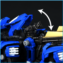 ブレードを前方に展開し、パルスレーザーガンを発射するアニメ劇中シーンの再現が可能。