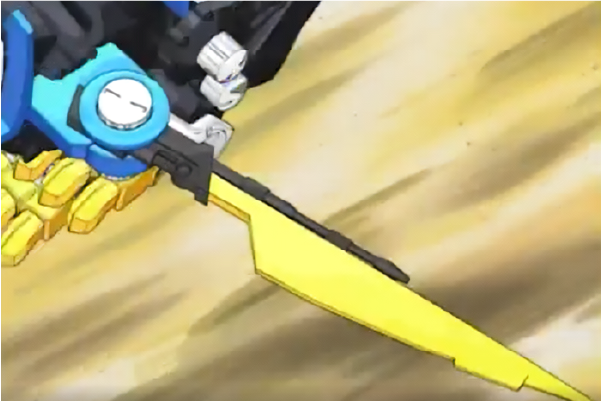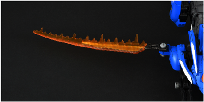 ブレードを左右に展開してのブレードアタック形態、さらにブレードを前方に突き出す突撃形態のアニメ劇中シーンを再現することが可能。