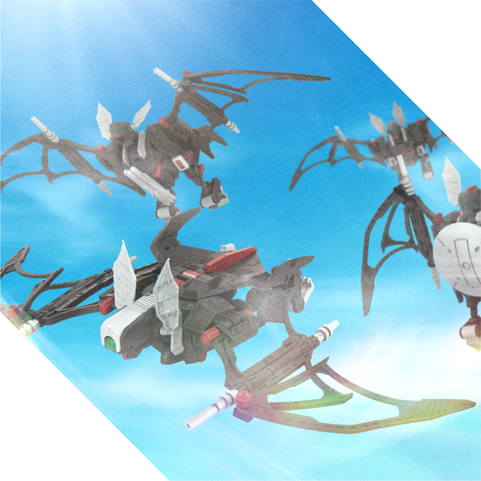 「RMZ-020 ザバット」に多数のパーツを追加した豪華仕様。 ホーミングボムに装備可能なAZ3連装空対空ミサイルとレドーム、懸垂状態で展示可能なハンガーパーツ、飛行状態で浮かせての展示が可能なディスプレイスタンドがオプションパーツとして付属。