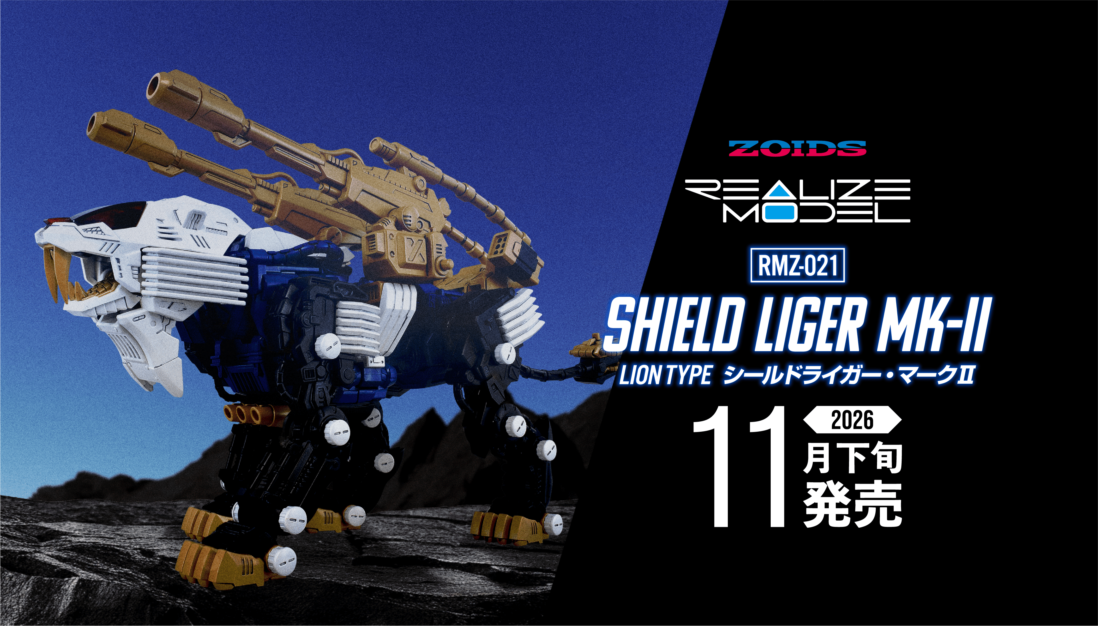 昭和期に発売したキットをリデザイン、リアライズモデルシリーズならではの魅力と高い解像度を備えた ”新生シールドライガー・マークⅡ”。