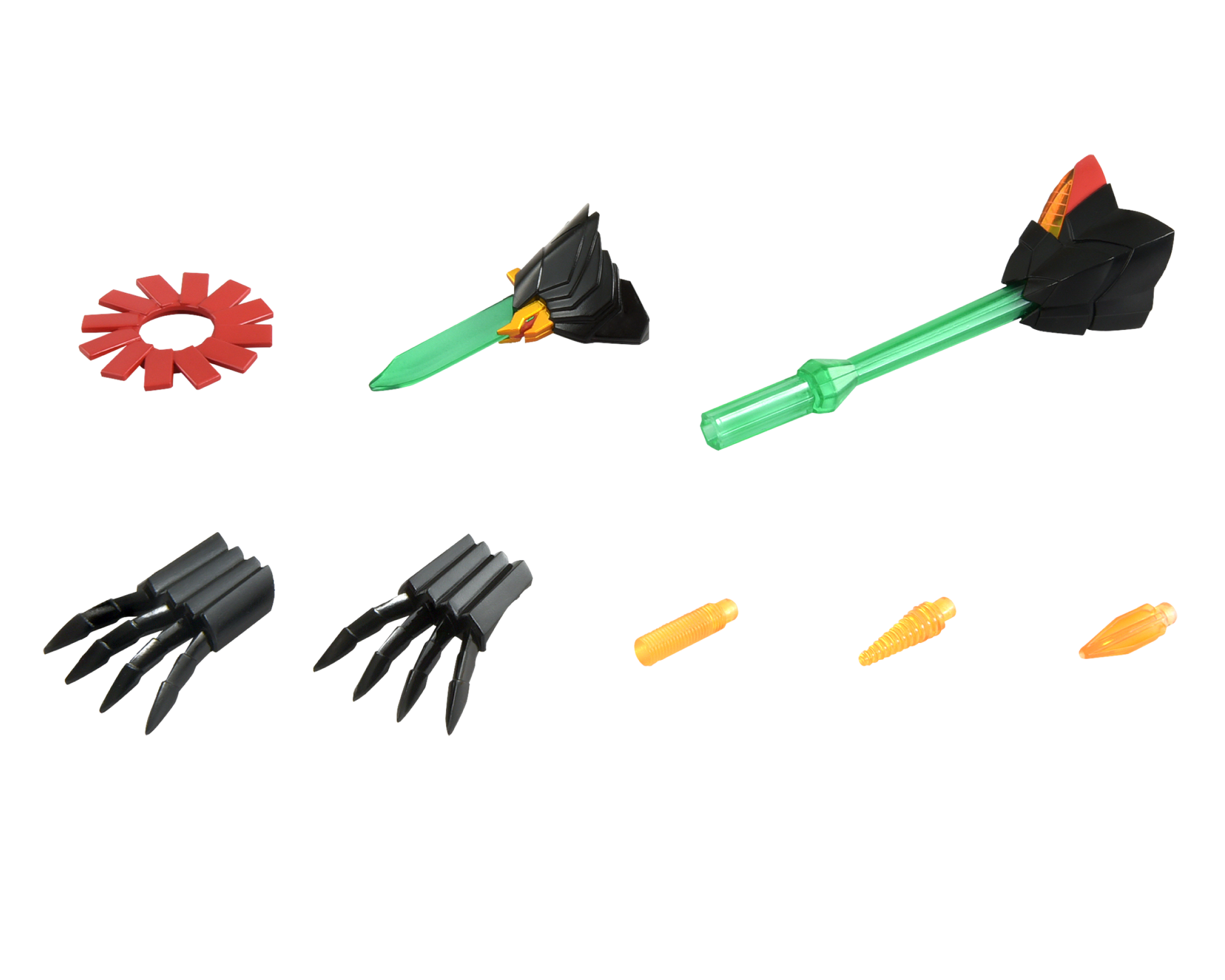 ジェネシックガオガイガーに設定された豊富な装備は、オプションパーツとして同梱。 Φ5mmジョイントを使用することで簡単な付け外しが可能!