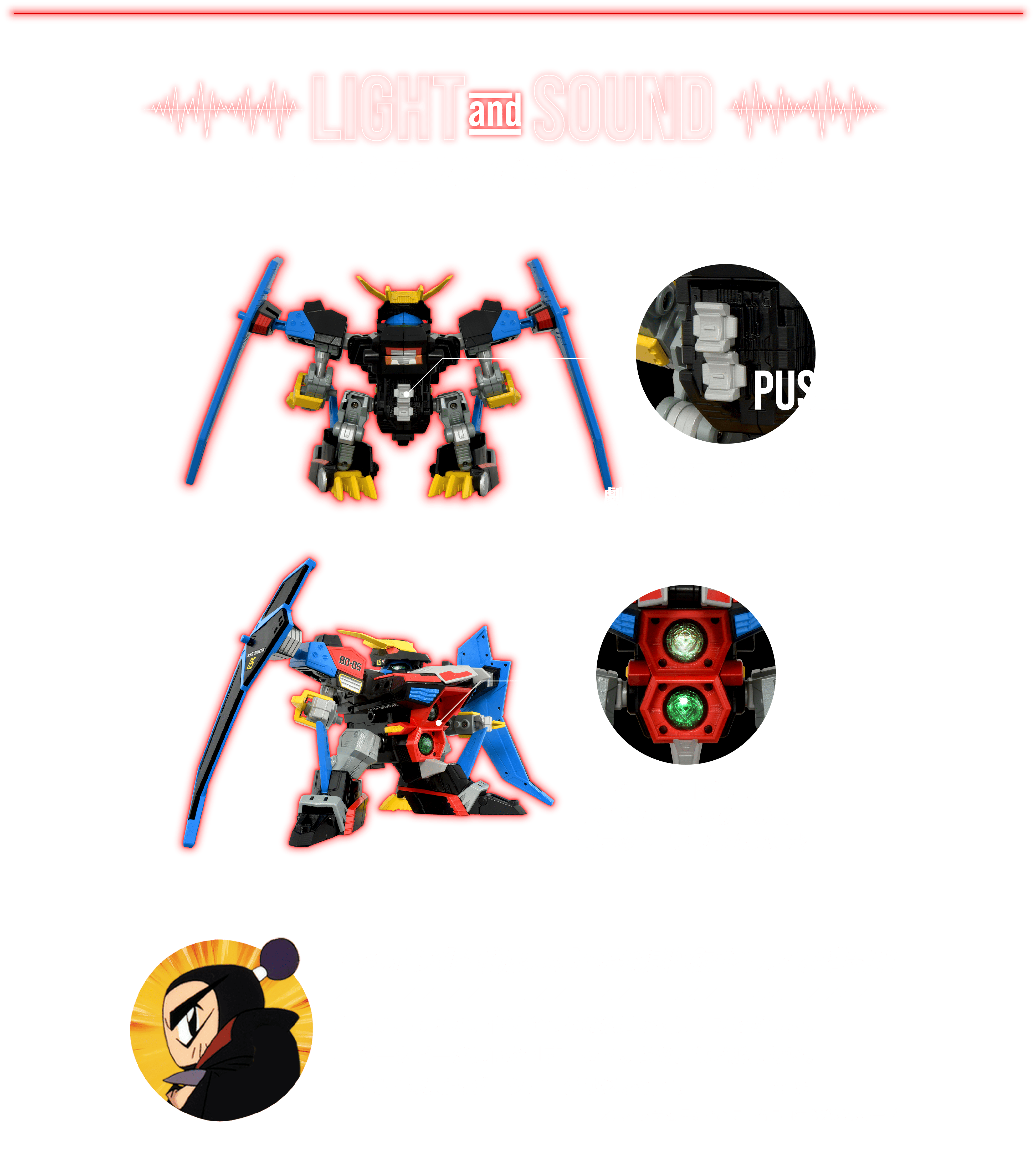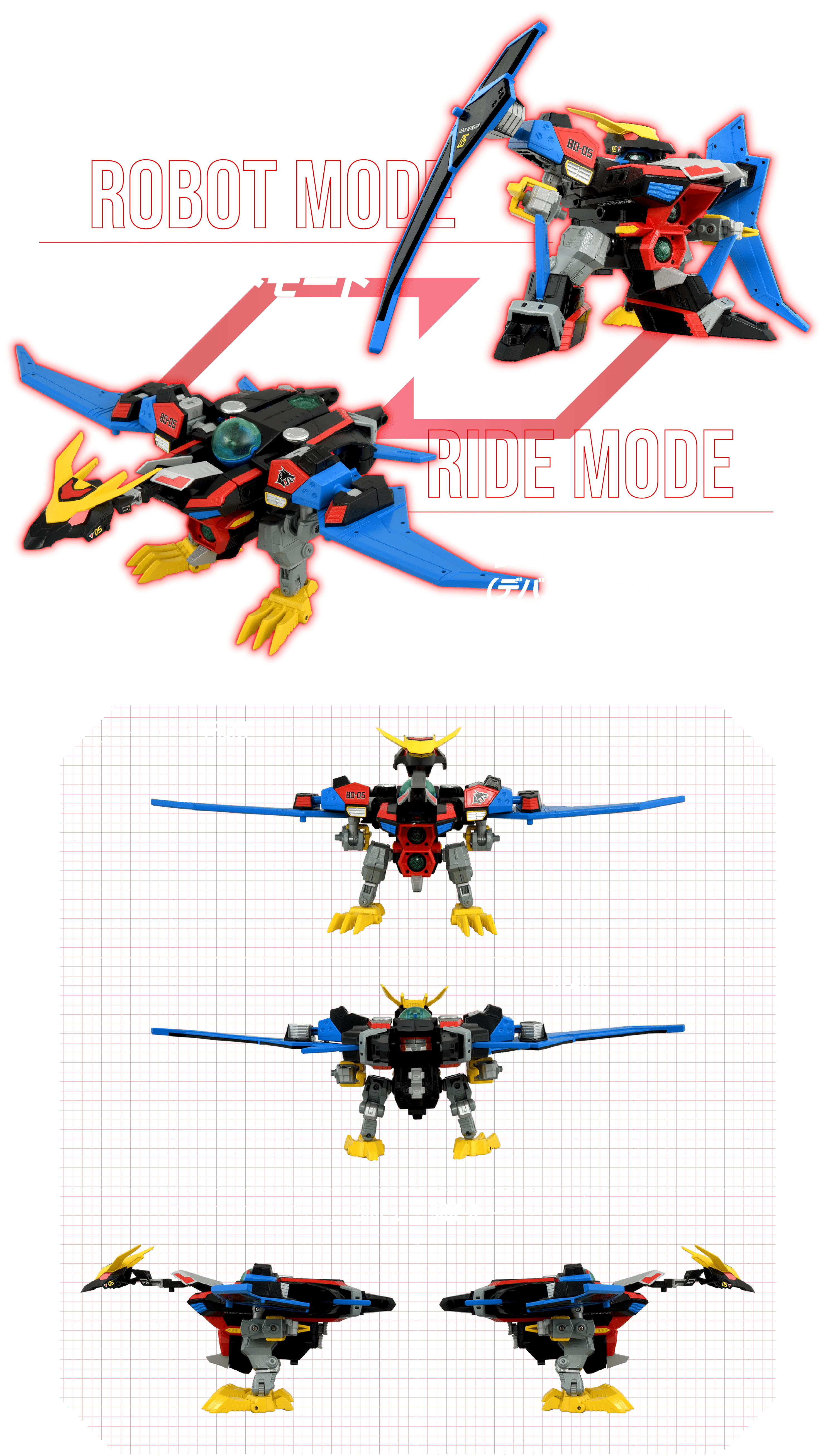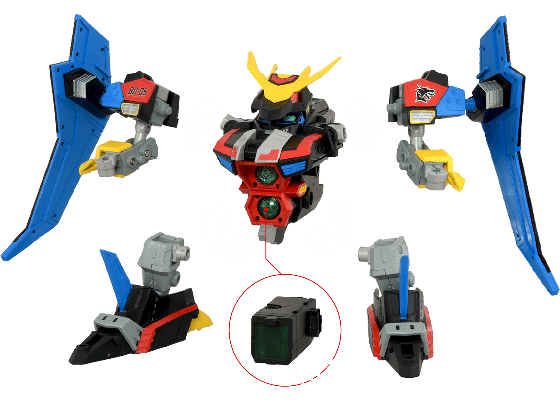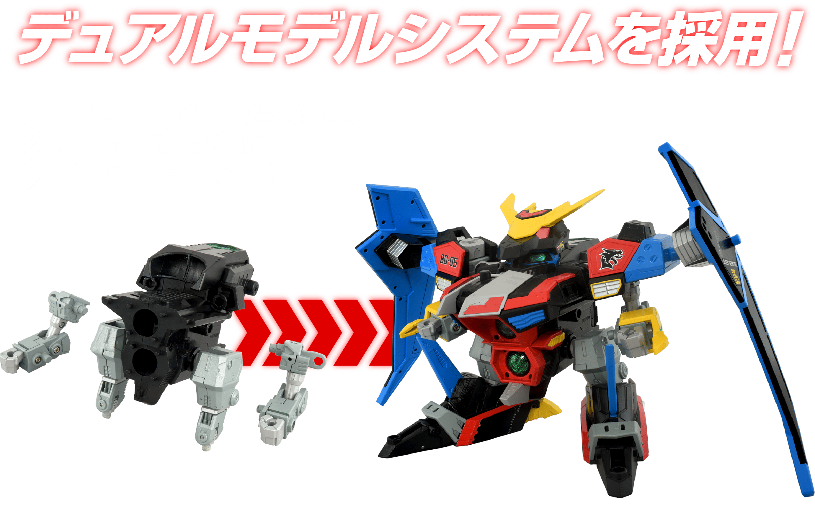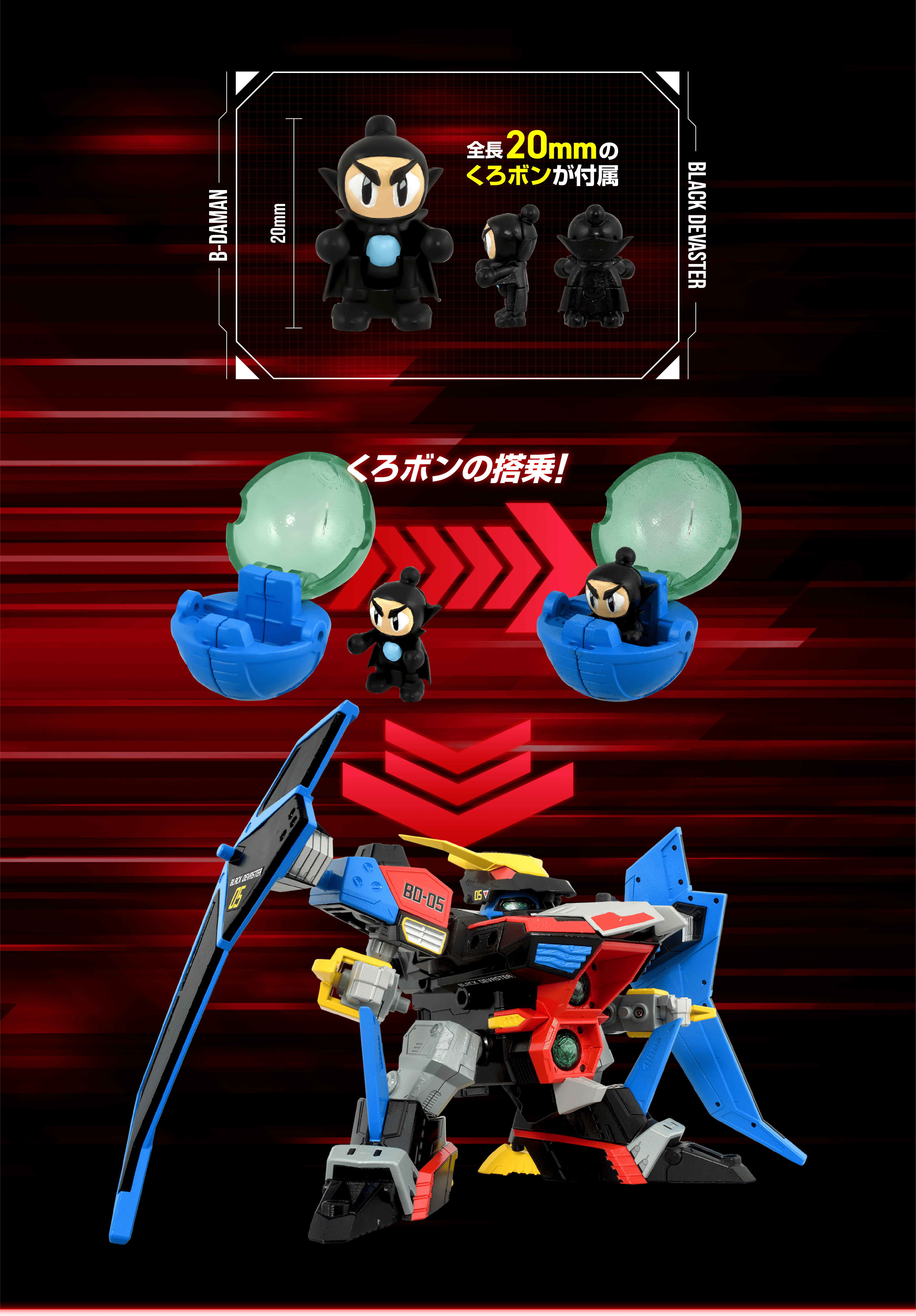 コックピットである「ビーダカプセル」を商品に同梱。当時品同様に頭部へ取付ライドモードが完成。パイロットの「くろボン」フィギュアが搭乗可能!