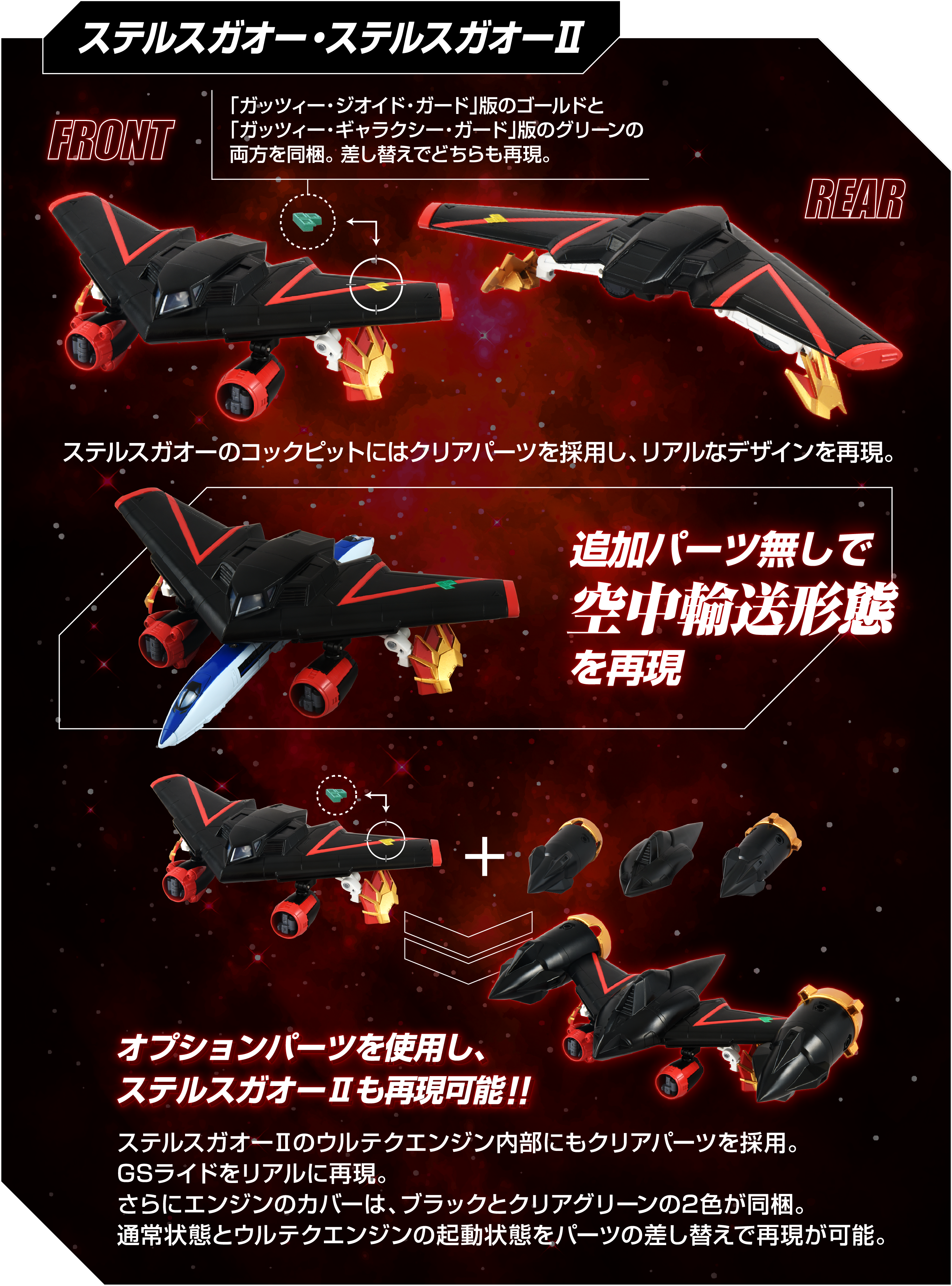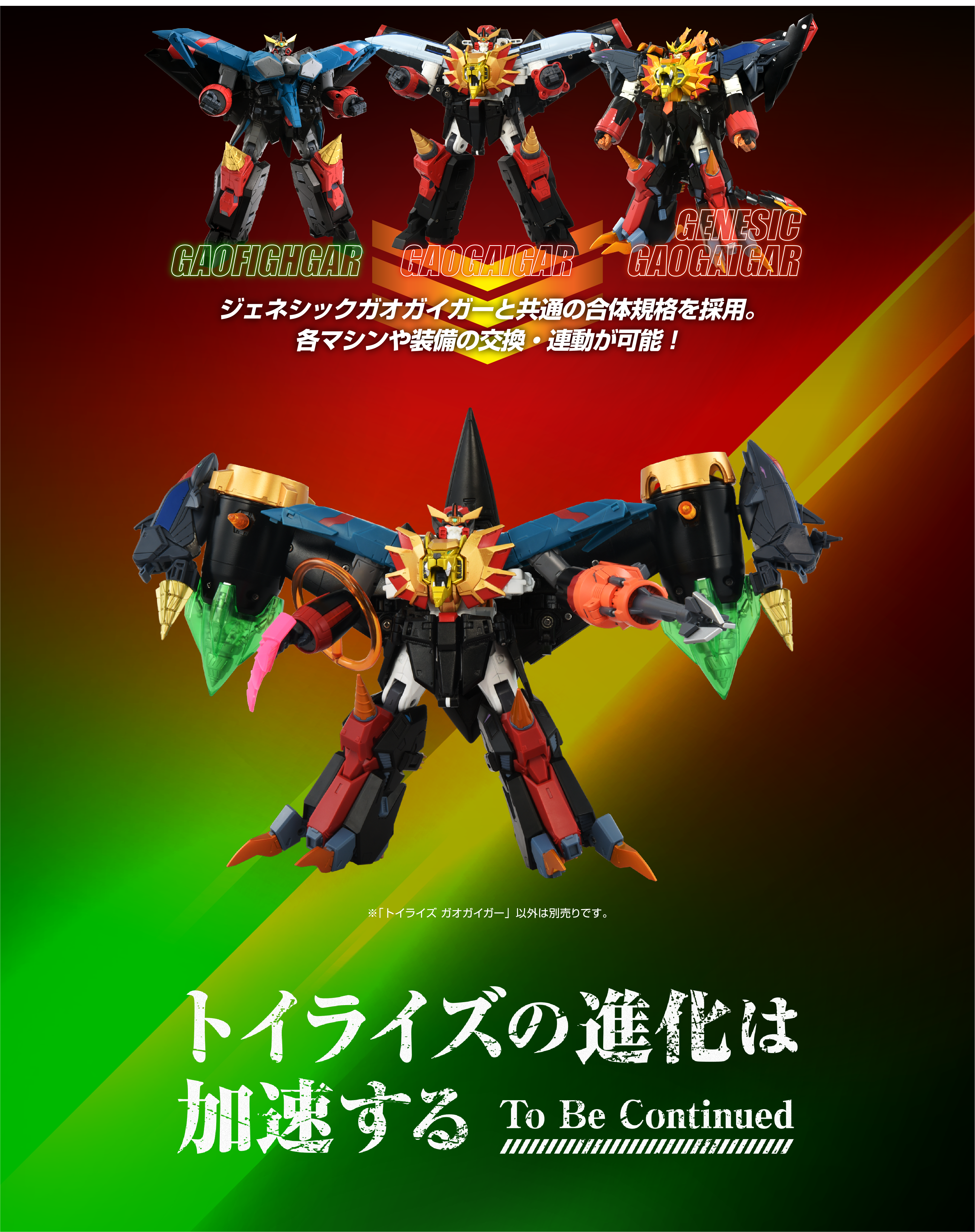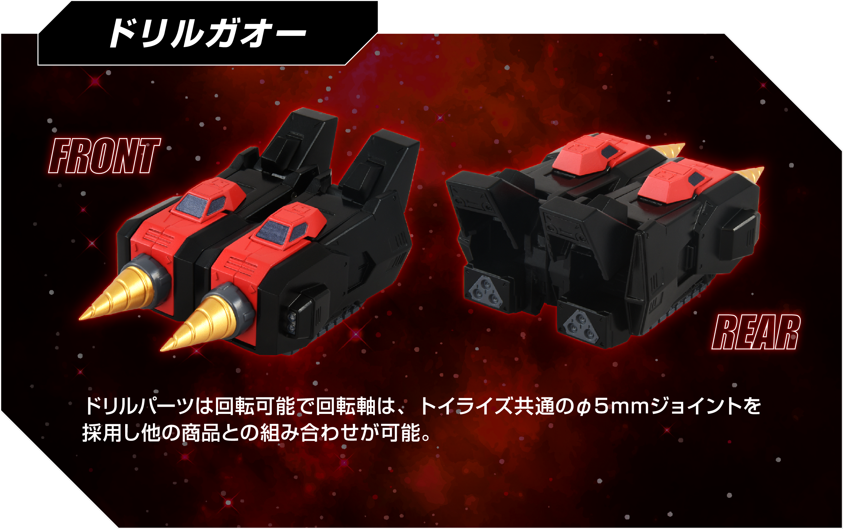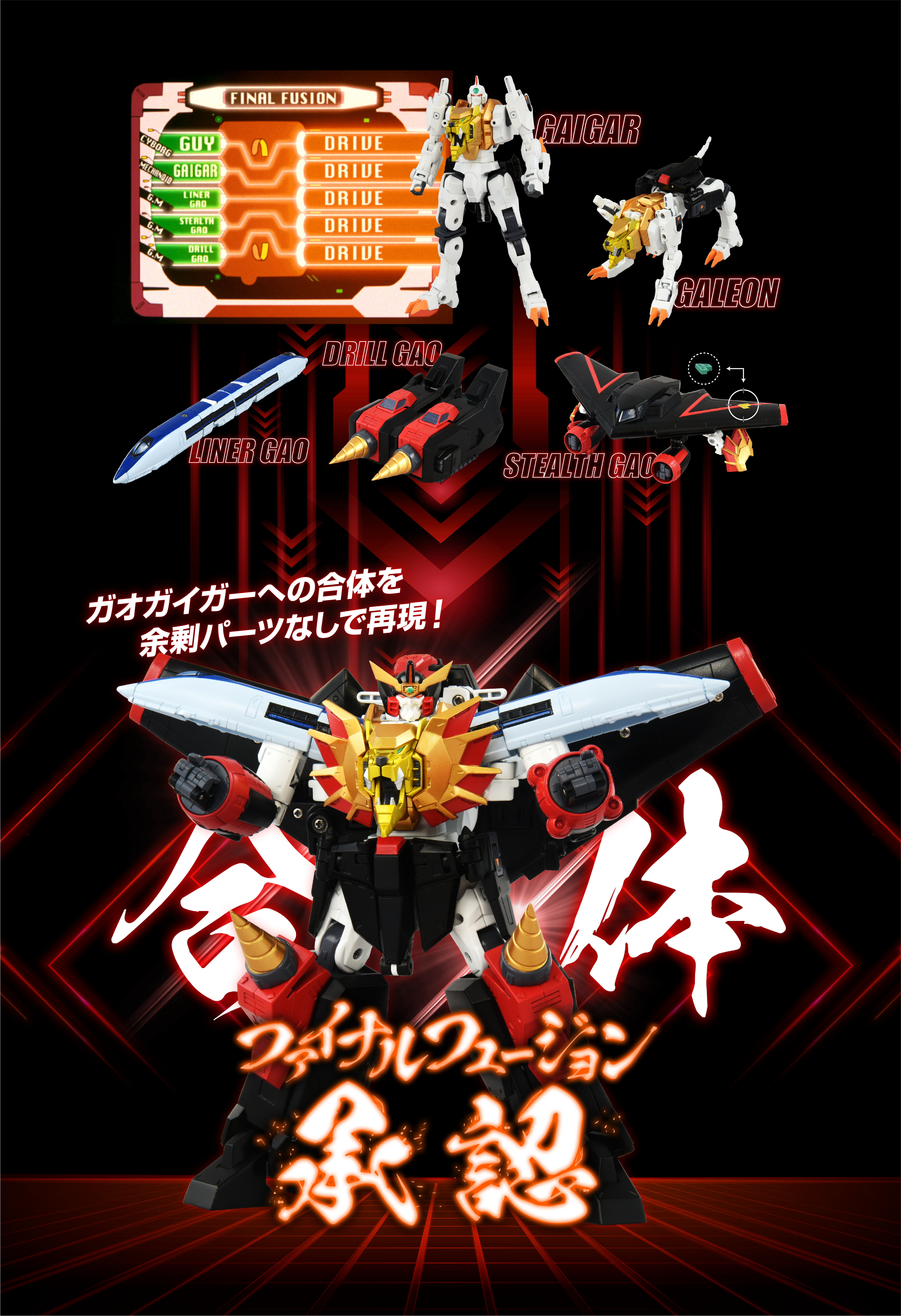 設定通り、ステルスガオー、ドリルガオーとガイガーの連動が可能! さらにトイライズ共通ジョイントを使用して、ユーザーオリジナルのガオガイガーを組み立てることが可能!