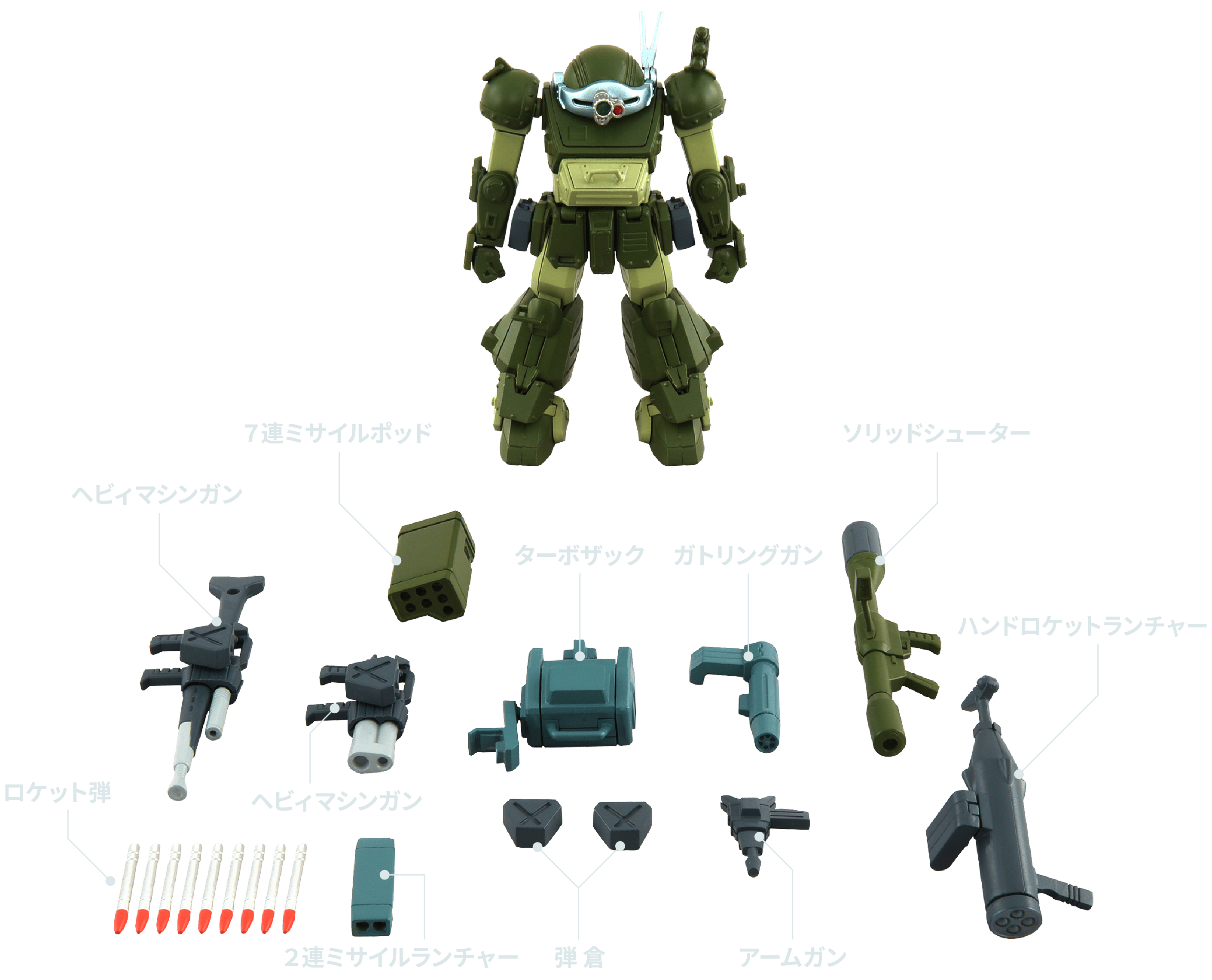 お好みでキリコ機・グレゴルー機・バイマン機・ムーザ機の兵装再現が可能。