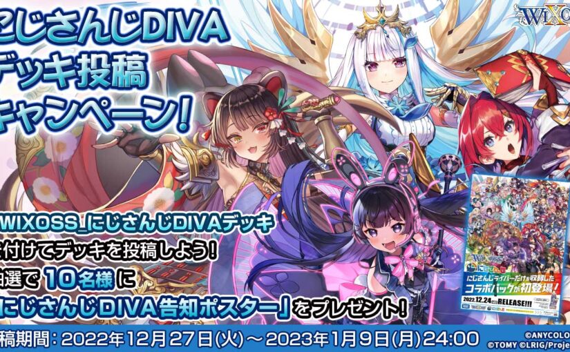 「にじさんじDIVA」収録カードを入れた、ディーヴァセレクションのデッキを作成し、ハッシュタグ「#WIXOSS_にじさんじDIVAデッキ」を付けて、Twitterに投稿ください!