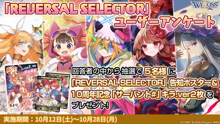 10/12(土)に発売した「REVERSAL SELECTOR」に関するユーザーアンケートを実施します。