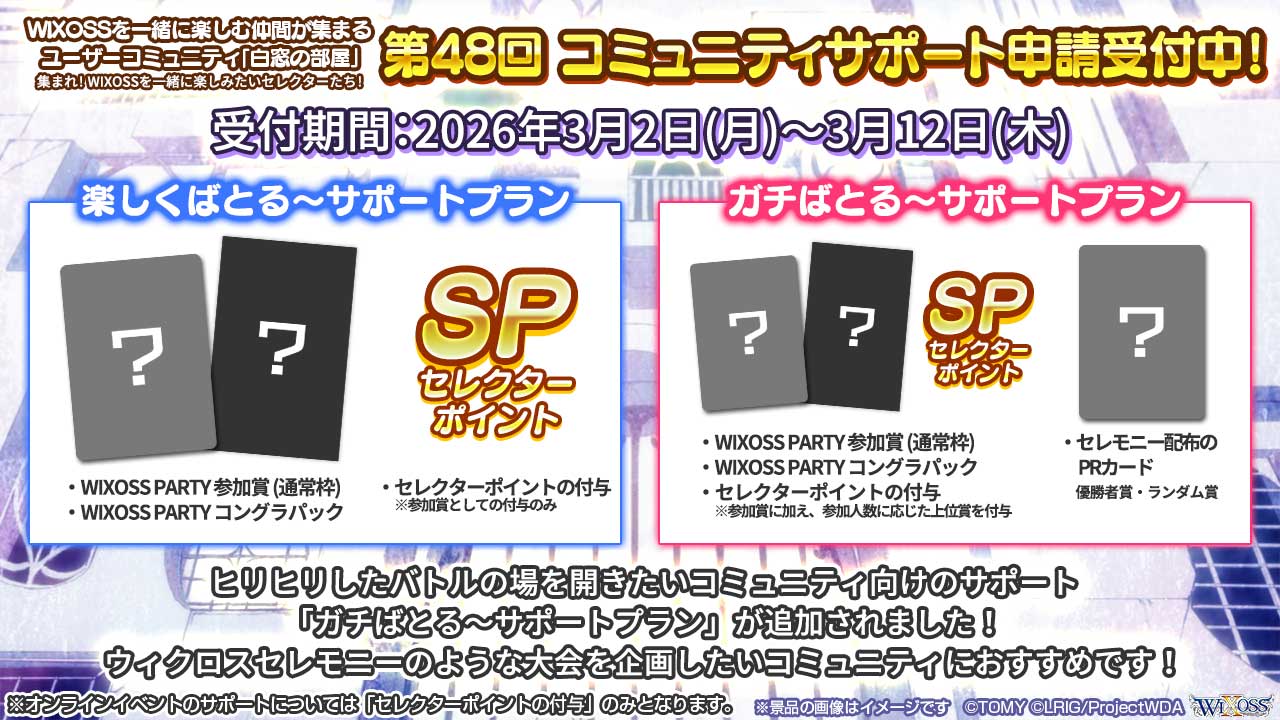 「WIXOSS白窓の部屋」に所属するコミュニティのサポートがスタート!