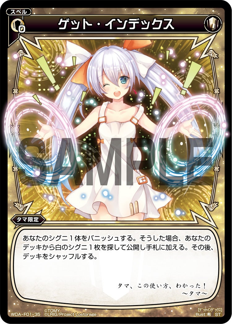あなたのシグニ1体を対象とし、それをバニッシュする。そうした場合、あなたのデッキから白のシグニ1枚を探して公開し手札に加え、デッキをシャッフルする。