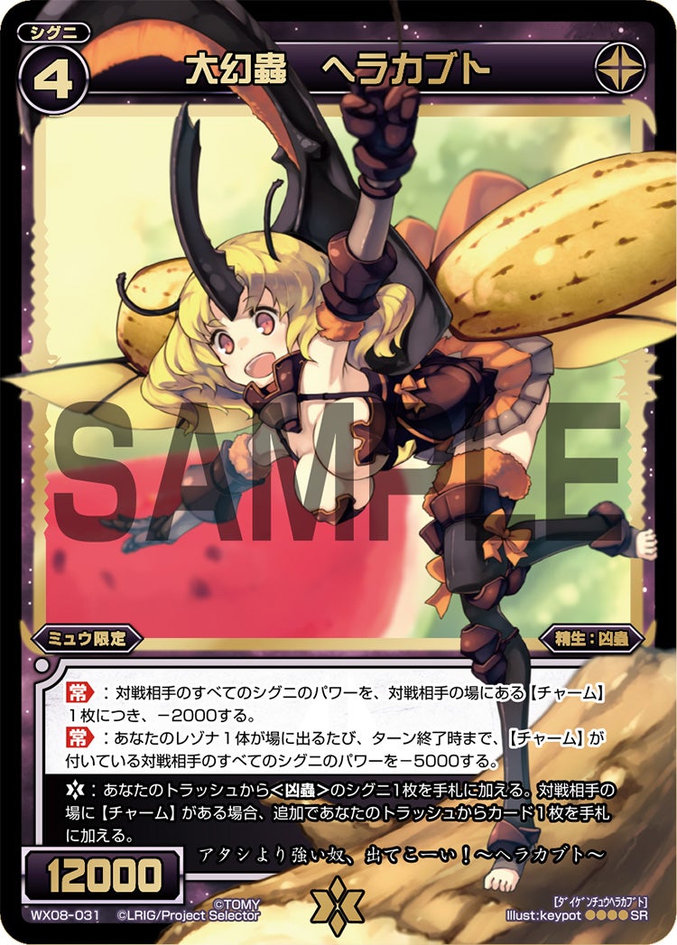 - 2体の《大幻蟲 ヘラカブト》がそれぞれ相手のシグニに付いている【チャーム】の数だけ-2000しますので、-6000が2体で合計-12000修正を相手のシグニそれぞれに与えます。