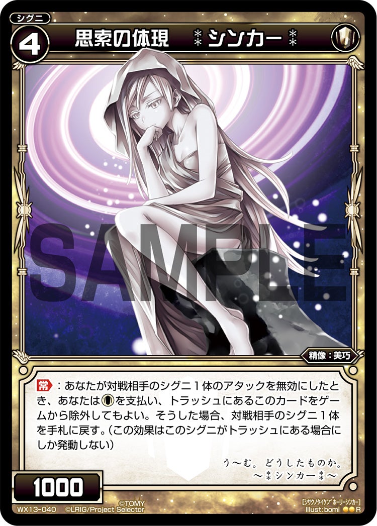 - 対戦相手のシグニ1体のアタックを無効にしたとき、エナゾーンにある《思索の体現 ?シンカー?》で《白》を支払い、そのままトラッシュから除外し対戦相手のシグニを手札に戻せますか?