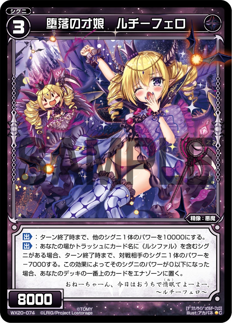 - 上の能力のような「基本パワーを特定の値にする効果」と、下の能力のような「パワーをプラスマイナス修正する効果」は、前者を先に適用してから後者を計算します。どちらが先に発動したかは関係なく、2つの効果を受けたシグニはパワー10000から-7000されてパワー3000となります。