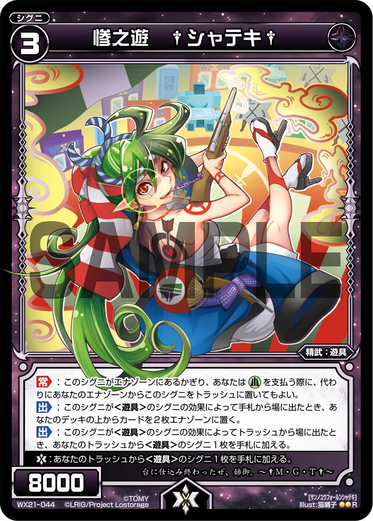 - スペルやアーツ、起動能力の使用コストとして、また効果の一部として《緑》1エナを支払う場合に、このシグニをエナゾーンからトラッシュに置くことで《緑》1エナの支払いの代わりとすることができます。